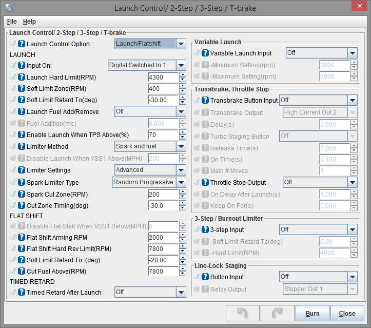 My goal is like I said, engine makes like 50hp during flat shift (some number much lower than normal), enough to preload the drivetrain to take up the slack, and then full power when the clutch switch says so. Since I'm dumping a 6 puck, I can't use too much power during this part or I'll still shock the drivetrain.