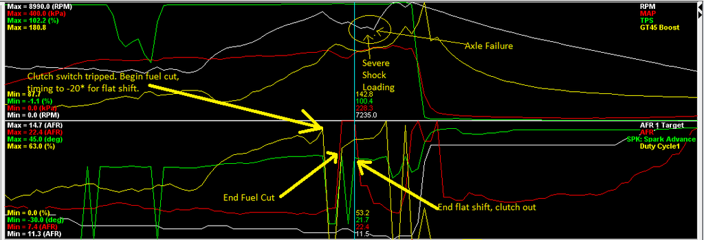 This car, the faster it's gotten, the harder getting flat shift right has been. It feels smooth in the car, but the shock loading can be seen in the logs and I have to fix that for reliability.