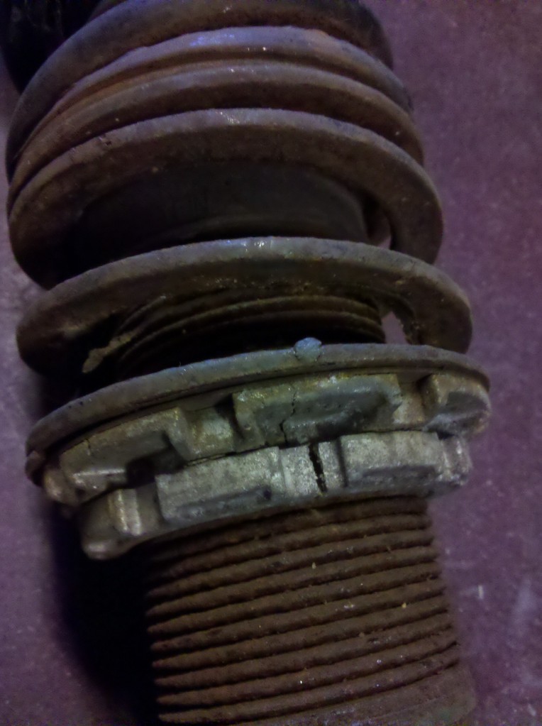 The PPF bolts are so stuck in the diff that I wasn't even able to punch them out. I got the top spline locked threaded portions out, but the bolts just spin in place. After trying to punch them out, the spacer piece between the diff and the PPF cracked and broke. The power of rust is insane.