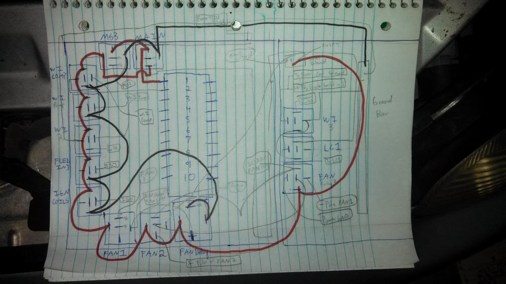I have new modified SPAL Extreme Performance 12” Fans mounted on a modified FM Fan shroud. These are the strongest 12” fans SPAL makes…. They pull 40 Amps EACH. They move a bit more air than the OEM Fans do when wired in series getting about 6.5V... In parallel it’s fairly impressive how much air they move, it’s enough “thrust” that it can lift its ~8lb weight up no problem. I built a series/parallel controller so I can run the fans on LOW (series, 6V each/12V total and only pulls 20 Amps, 240W) all the time when the engine is running to keep air moving through my intercooler/engine bay, and then switch them to HIGH (parallel, 12V each, 40A each, 80A total, 960W) when needed. I’m planning to wire them so they automatically go to high if throttle > say 50%. It also has a time delay relay installed so fans run on low for 2 minutes after key off to cool down the engine bay/intercooler a bit to reduce heatsoak.