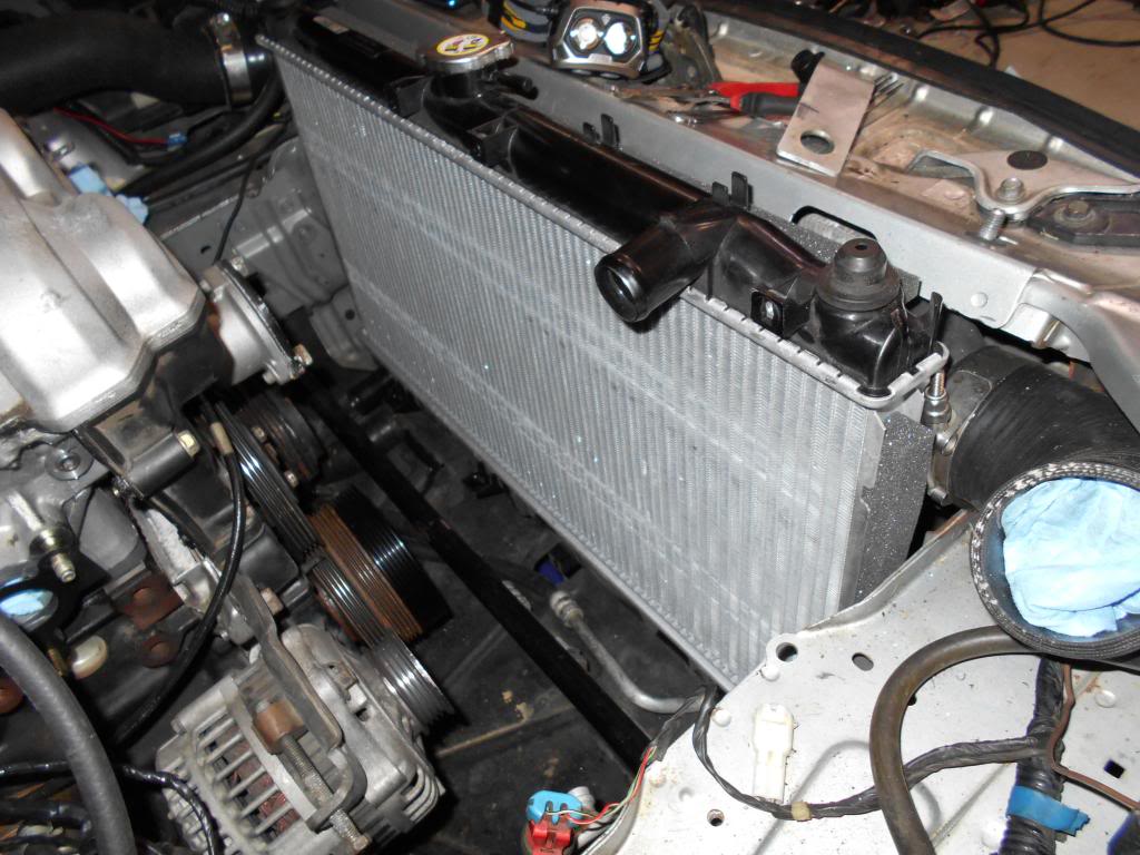 I suspect this cooling approach will be adequate for the street and probably fine for a drag strip, but I don’t know (I doubt) it will work for a racetrack. So I’m open for ideas here. I do have my factory under tray and decent front end ducting. My thoughts are either a better radiator, or another radiator located somewhere else. I also considered moving the a/c condenser somewhere else, I’ve seen this done on Porsche’s before so the radiator/intercooler gets good air.