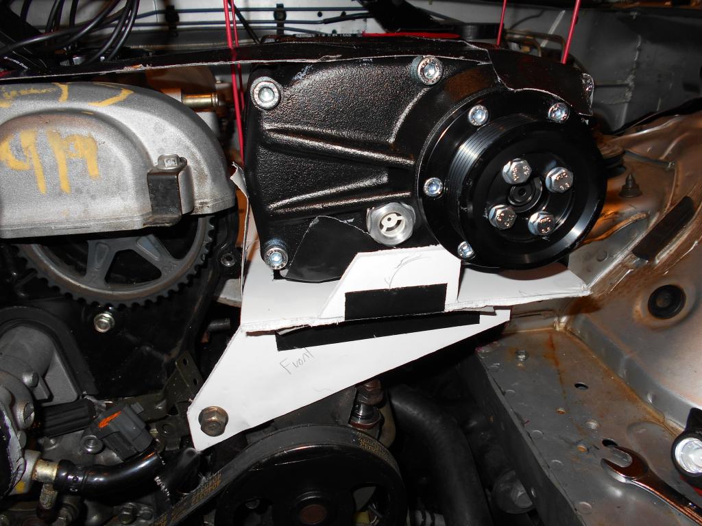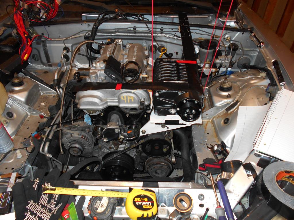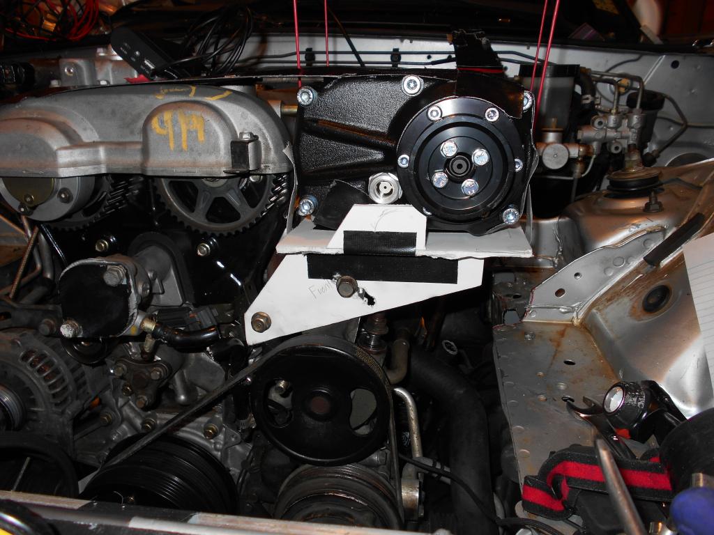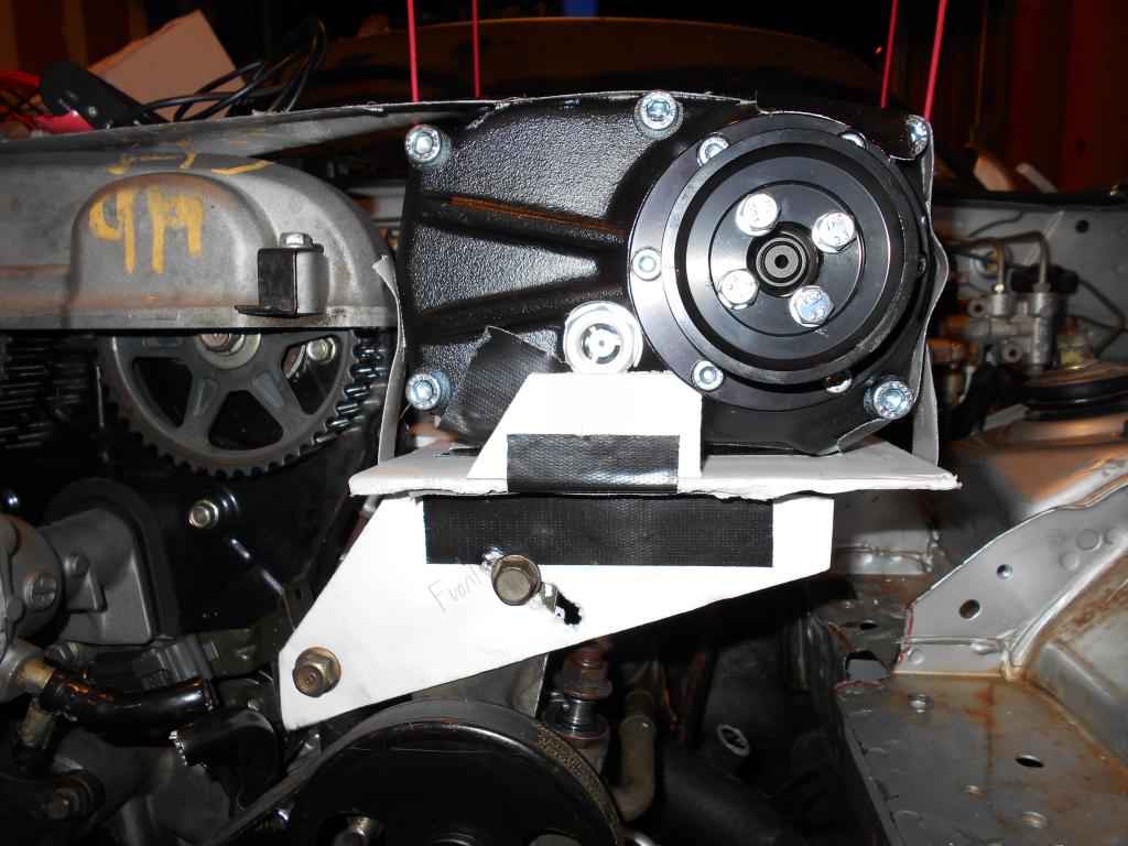 I apparently don’t have pics, but the SC bolts up now to this bracket, and the pulley is exactly parallel to the crank pulley. All that’s left for the SC system is to weld the tensioner on, then fab an inlet flange, box and flange to bolt a throttle body onto, then silicon bend to a MAF and air filter. And throttle linkage/bypass valve too.