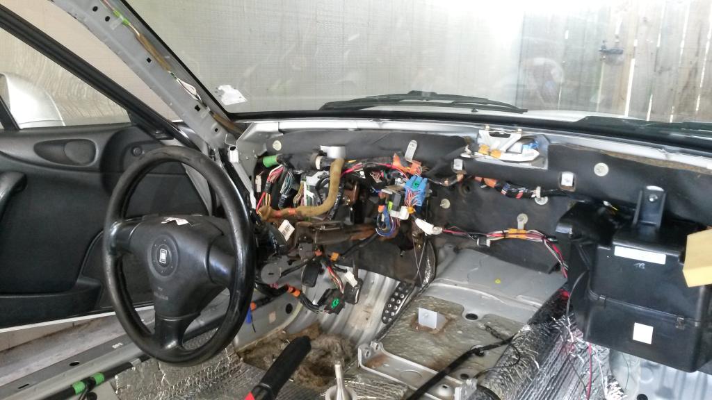First, I decided to wash the car to clean it up a bit. I ended up getting carried away cleaning.... Tore the entire interior out, changed the carpet, cleaned the dash, cleaned the carpet/seats, replaced the engine main wiring harness that goes from stock ECU to engine.