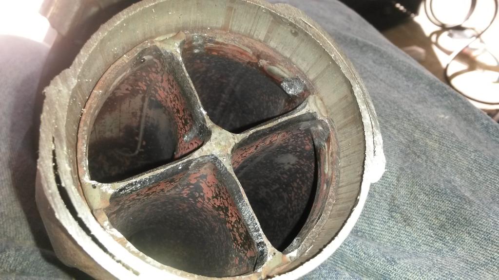 Catalytic converter! It's the one Leafy said last for several years. It's a 300 cell spiral core metalic. I'm going to weld an O2 bung in the back of it.