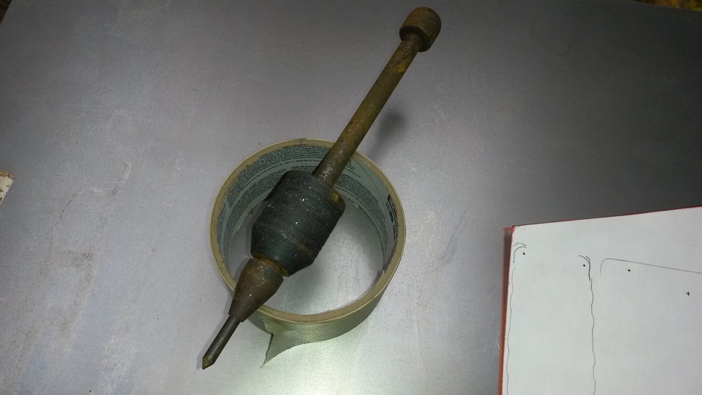 I made this punch back in Highschool! Has an oil hardened tip too that i heat treated myself. Weight moves up and down so no hammer required.