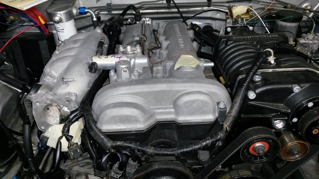 So.... I knocked out the rest of my list today to start up the car on the stock ecu. I have a few pics up to this point, will post later. I do not have a upper to lower intake manifold gasket, so for now I bolted it together with no gasket. UPS has shown they were going to deliver the part Friday, Sat, MONDAY, and now it still says in transit, check back later for a delivery date as they misrouted the package. Great!