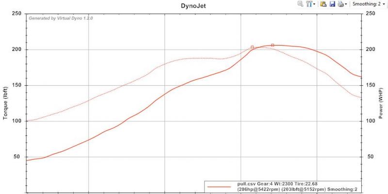 My car is really dying out on the top end of the powerband. I logged a pull on virtual dyno so you can see how it drops off. (I guess I accidently cropped out the RPM's, but the vertical lines should be 1000's, so the pull let out at ~6500 to give you an idea of the painful curve I'm up against)