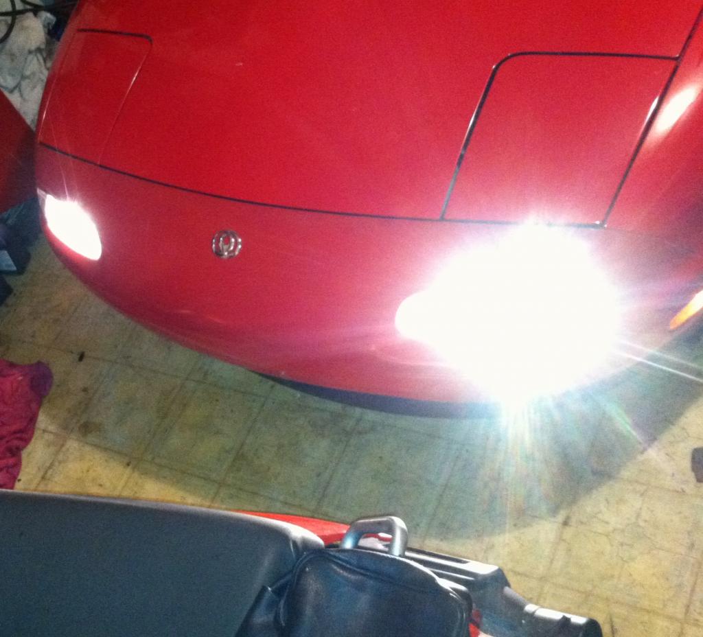 More details on the headlight conversion? Can you get a picture at night showing the cutoff, intesity of the light, etc? Pretty awesome, you probably will drop a good 20# from the front of the car without the motors, lights, housings, etc. Noice.