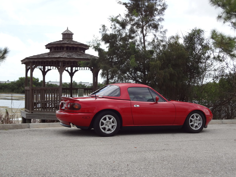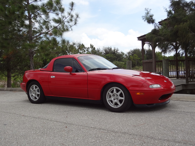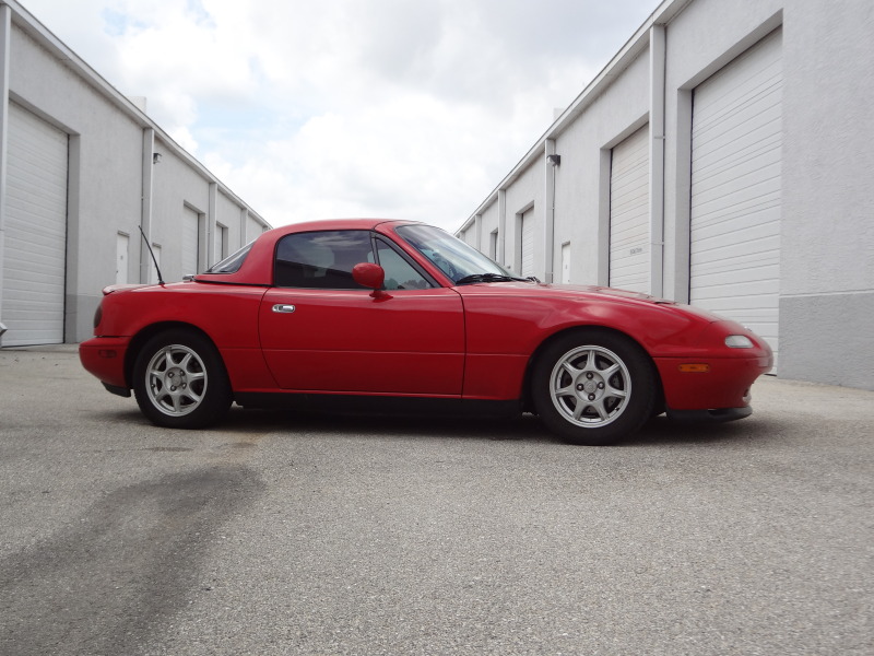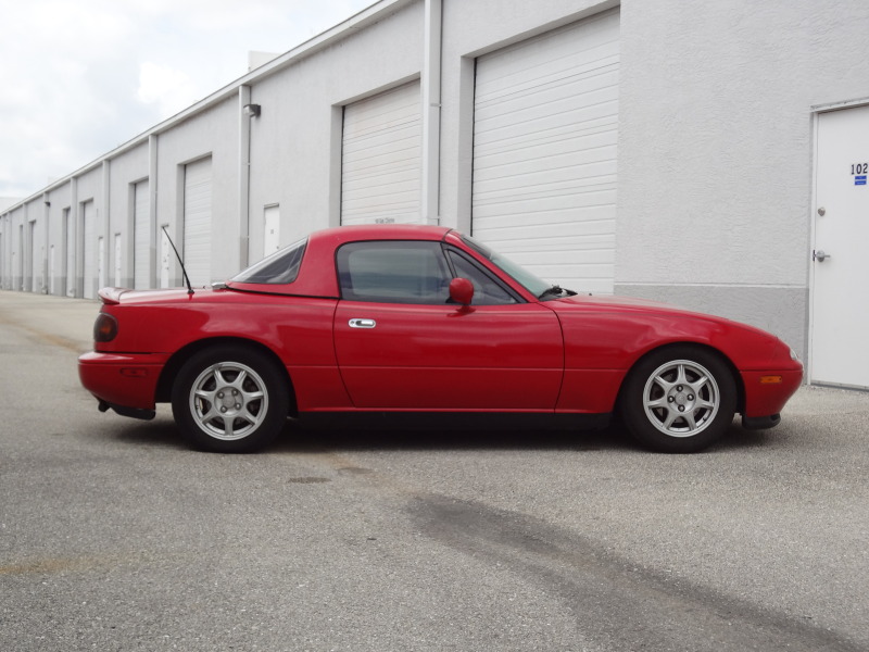 Gave the car a good wash and wax, the paint cleaned up really nice aside from the hardtop that still looks crappy. Also got my coilovers, swaybars, and 10AE front shock brace are all on and I got the windows tinted.