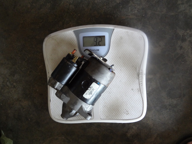 First of all, I've read "One starter bolt doesn't line up." I compared the 6 speed NB starter to my 5 speed NA trans and the upper outside bolt is in a different location. Since I had the starter and transmission from a 6 speed, the only issue was the plate between the motor and trans, which I cut to fit.