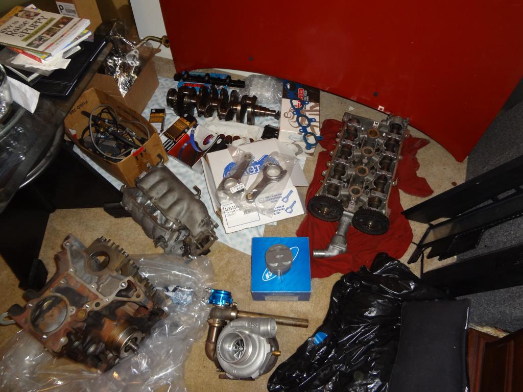 Hoping to make some decent progress this week since I'm off work. I pulled the motor yesterday but still have to assemble my other block and swap out some damaged valves on my head. Took a picture of my pile of parts that's taken over the extra bedroom and a 4x speed video of pulling the motor if you want to waste 52 seconds of your life.