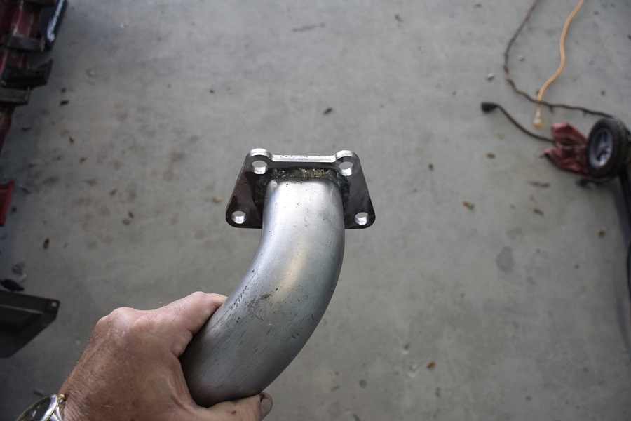 I made my own,,, turned out to be pretty easy. Squished a 2.5" pipe in a vice so it'd fit top to bottom in a CBM motor Sports flange. Welded the top and bottom locking them in place. Then working from the inside of the exhaust pipe, using a solid pipe and a hammer worked the sides of the pipe over to flush up with the flange, then weld it up. Toughest part was setting the angle of the pipe to the flange. As a sidebar,,, this is an FRS not a Miata.