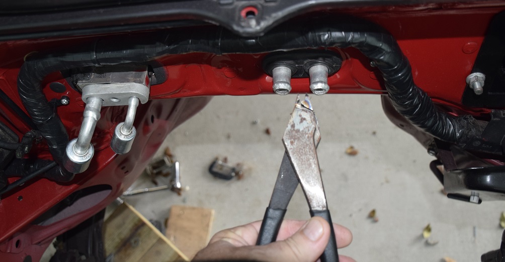 Ours is plumbed but we didn't charge it before winter, and now we're waiting to drop the engine to swap out the clutch before we charge it. By lower left you mean driver's side? What's hitting? The compressor body or the hoses?