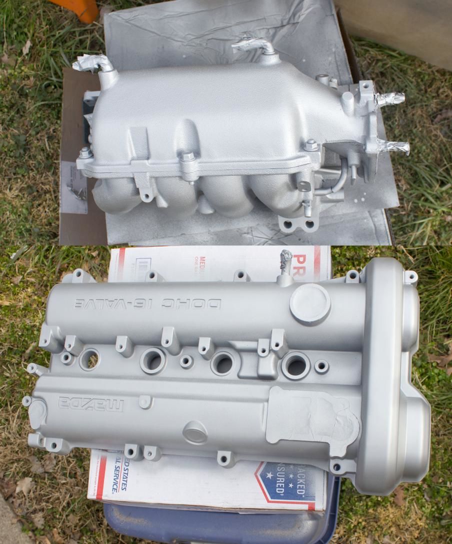 Seymour Alumi Blast on the valve cover and IM. I'll probably do the oil pan as well so I can find leaks easier. It looks pretty close to brand new cast aluminum.