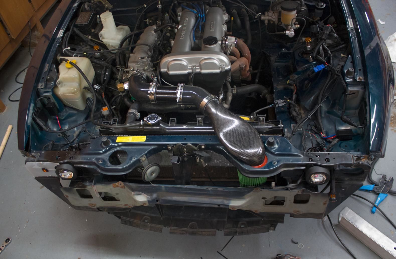 The headlights and turn signals are wired and functional. The little plastic panel that holds the turn signal will get replaced with carbon plate: