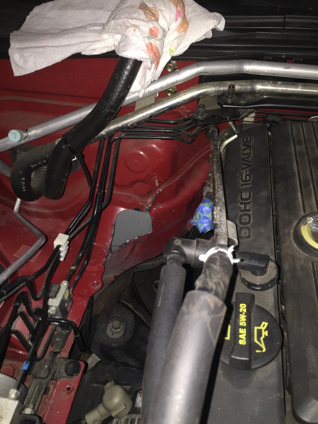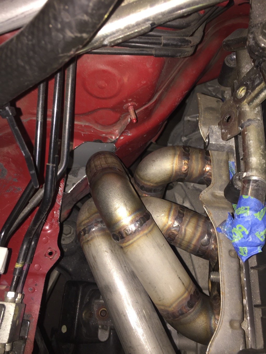 Alrighty. Engine bay "modification" went pretty well so far. I got everything cut out and made some cardboard templates for the filler panels. Didn't have time to cut or weld the panels today, but I am very happy that the cutting went well and the manifold fits now! Here are some pics of where I am at now.