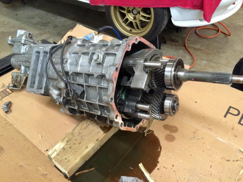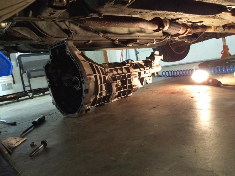 Well it almost took a month to get 2 snap rings for that transmission, but we got them! So last night I tossed them on the 6speed and we mounted her back up.
