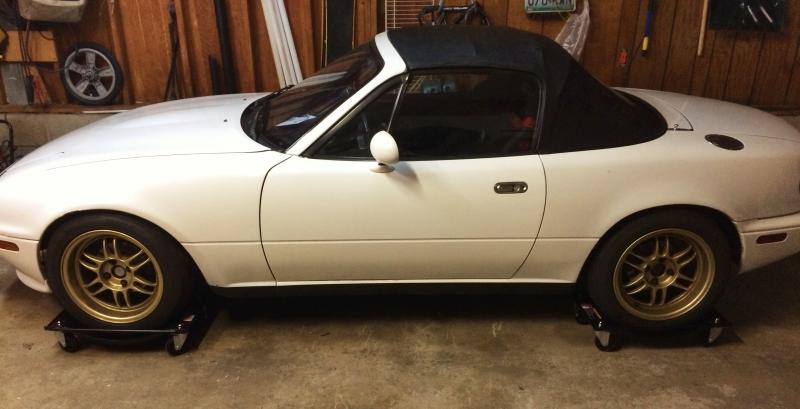 Got the car in full winter mode. Added some lights to the garage and put the car up on wheel casters. Now I can move it out to the middle of the garage and move it back when I am done working for the day.