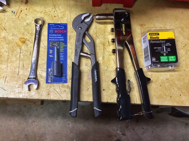 On the bright side, I went and picked up new tools for the heat shield. Also a 13mm wrench and a grinding wheel. I had to make the 13mm a slim wrench to get at that bolt.