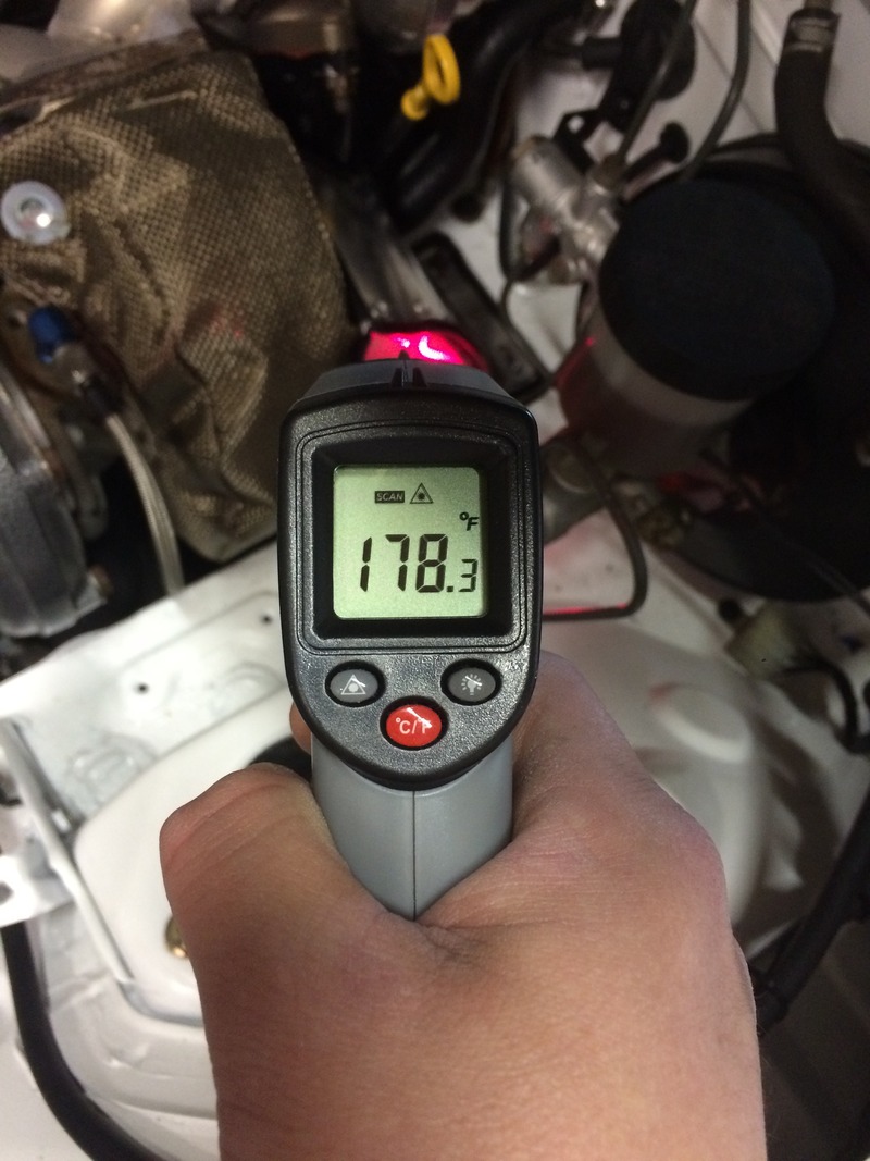 I also did some more temp checks on my heat shield setup. Everything seems to be working great. The difference between manifold and turbo temps vs blanket, heat shield and master cylinder are worlds apart. Actually the MC temp was about 10* higher than the windshield washer fluid on the other side. That made me happy. This winter / fall I will need to get started on my ABS undertray and brake ducting.