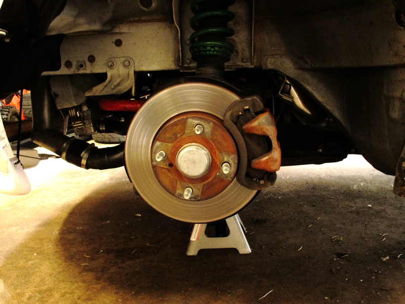 So I have been picking away at my front and rear brake upgrade for a few hours in the evening this past week. It is the last major project I want to get done before my dyno tuning in July. Also I wouldn't mind some time doing my best to dial in a tune for my car prior to dyno time... we will see how far I get. So I ran into a unforeseen snag tonight that I should have thought about.