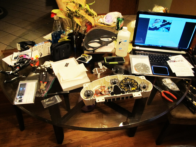 So... found some interesting things when doing this project. First of all, one of the previous owners took the gauge hood off, poorly. Granted this is a 25 year old car and 25 year old cheap plastic. However, at 1, 2, 3am... it sucks to find.