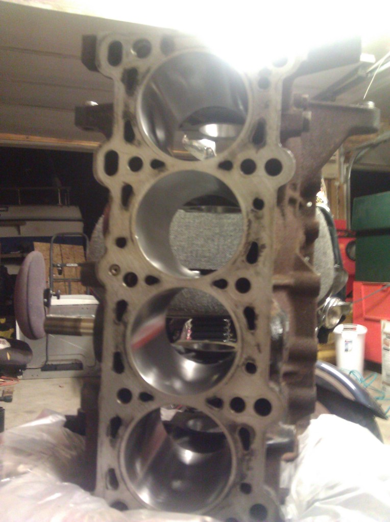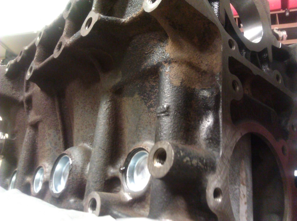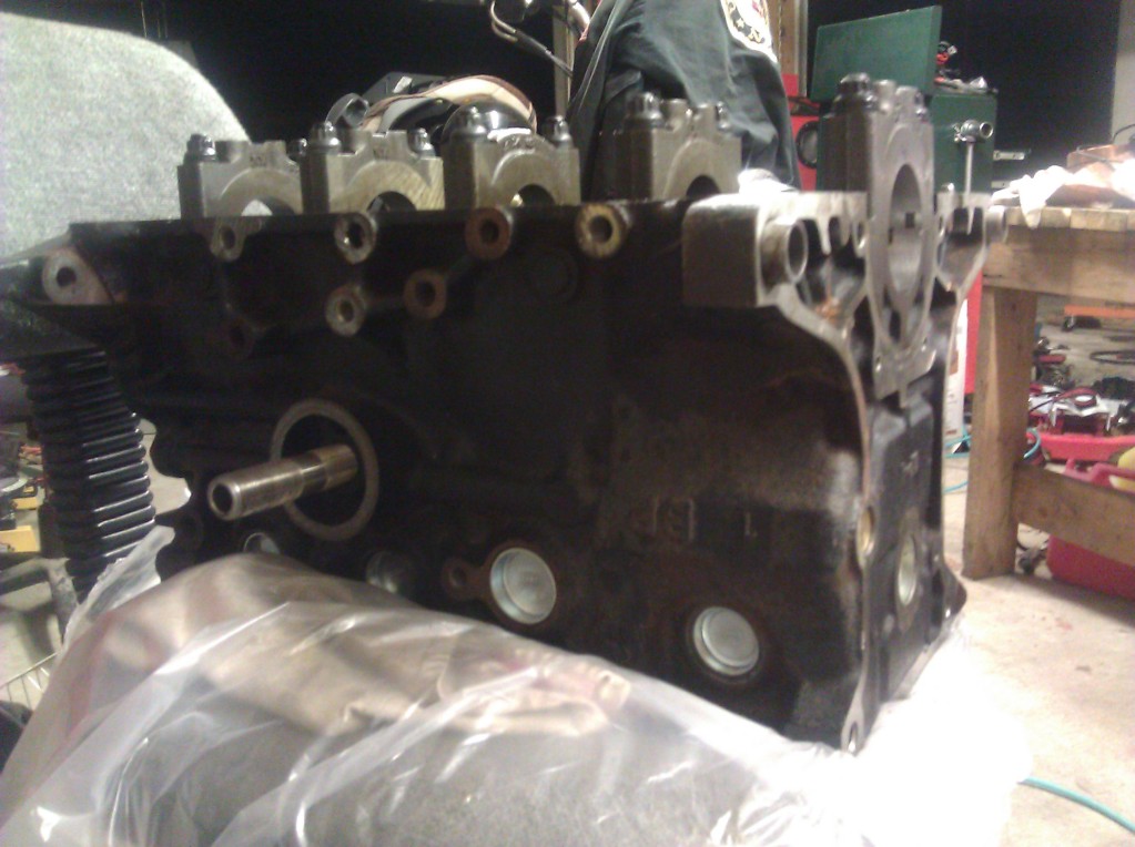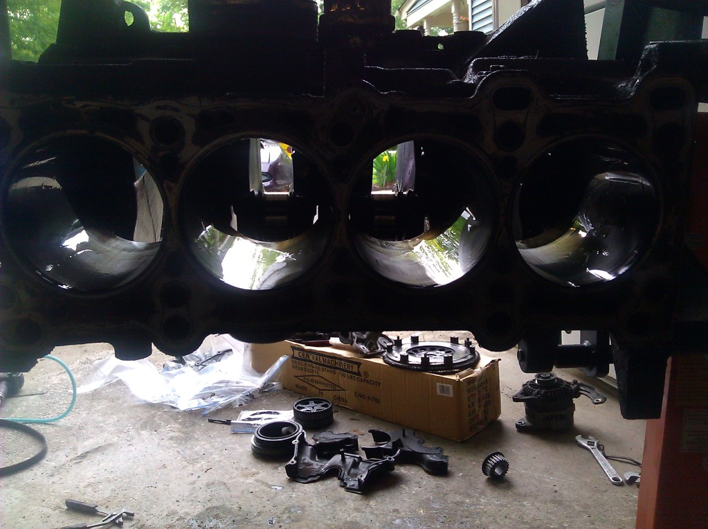 I'll start this thread with the donor block which is a recently rebuilt 95 Merlot block as well. The clock read well over 200k but the engine still had the cross hatches in the cylinders - impressive. Wish I took pictures of it before I sent it off to the shop. The machine shop is doing a 1mm overbore to 84mm (mic'ing each piston), checking the mating surfaces, checking the main caps with new hardware in case it needs a line-bore, and hot tanking.