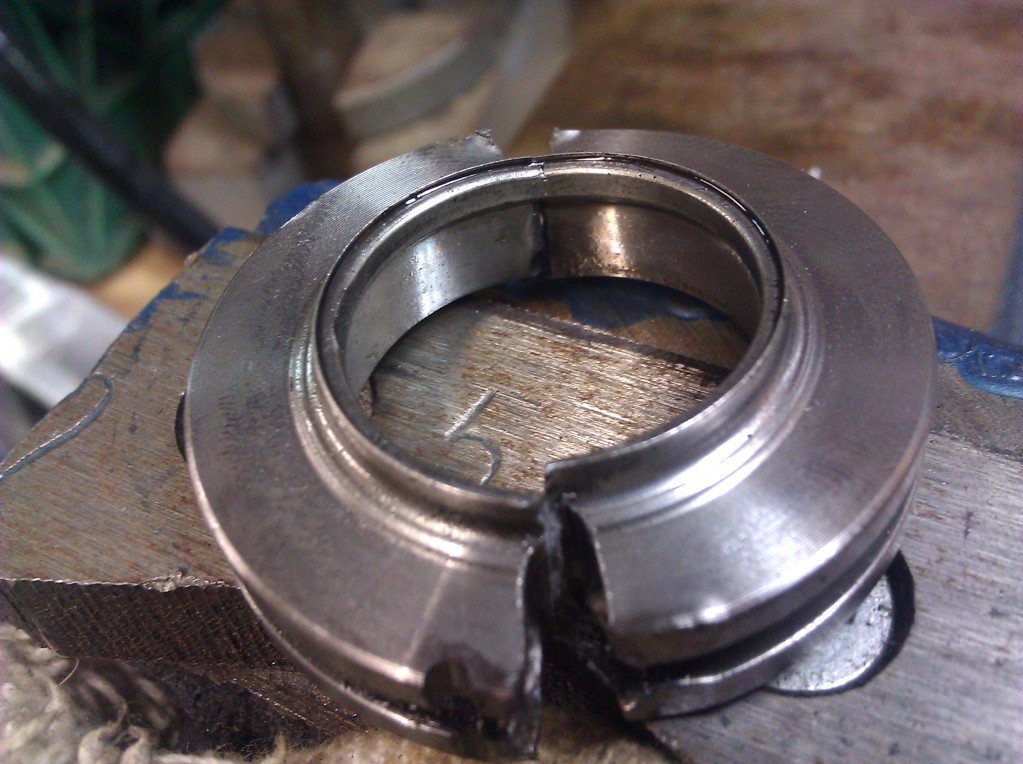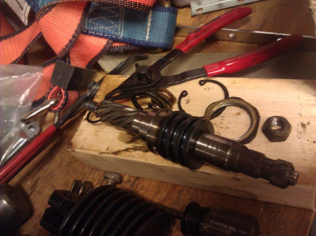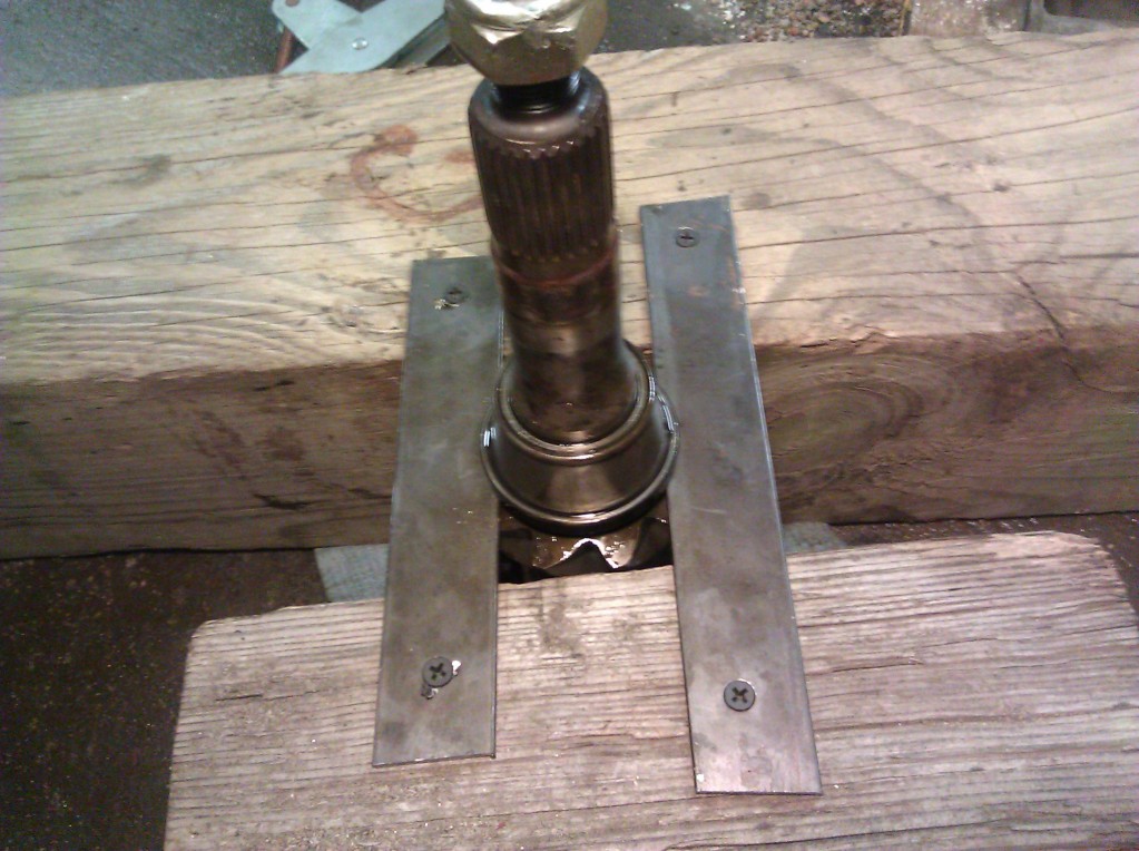 That "press" idea between the two 6x6's and a BFH, by the way...Was a horrible idea. The roller retainer flew off the inner race and about fifty-eleven rollers shot about the garage.
