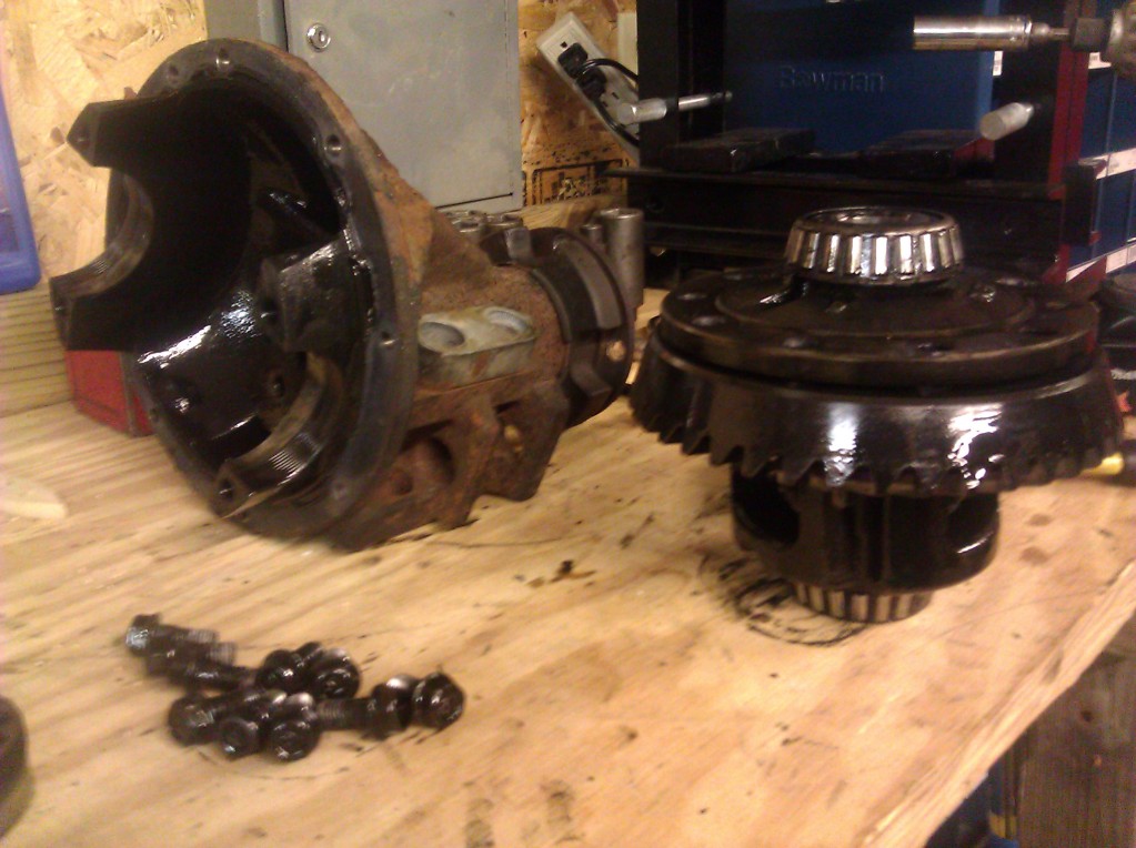 Diff night - which is always my favorite. Pulled the original rear end and PPF for the rebuild. Swapping in a 3.9 ring and pinion. 3.6 is probably a better option but I'd like to try out a 3.9 set first. Anyways, pictures: