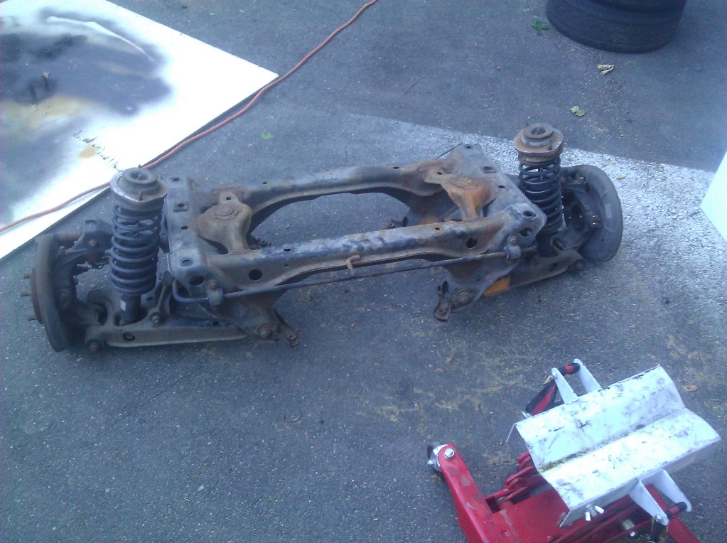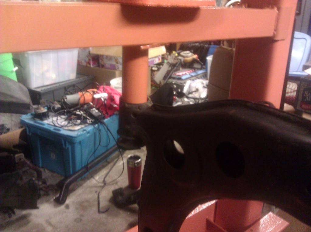 Here's the diff carrier. I sandblasted the whole thing (no pictures) then decided to change my plans up. I'm using a 2nd gen rx7 carrier now since they don't have the relief cut. More dangerous? probably. Anyways, here's some shots of pressing the damn bushings out. Luckily, I had my trusty HF 20 ton press.