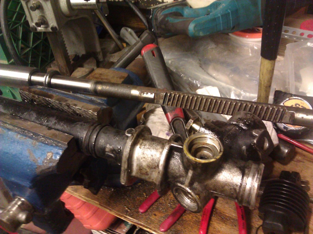 With the front subframe out, I needed to deal with the rack. Being a M-edition meant it had power steering. I don't want the drag of the pump, or the weight, or the feel. I want the quicker ratio, however. "properly" depowering the rack was in order. I actually only finished this a few days ago because the rack rod had some rust I needed to figure out. No pictures of it reassembled yet but there will be soon. Here's some disassembly.