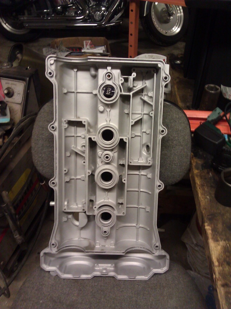Hey look, a valve cover. Sandblasted, ready for high heat prime and sexy coat of Merlot. Y'know, for that "coordinated" look.