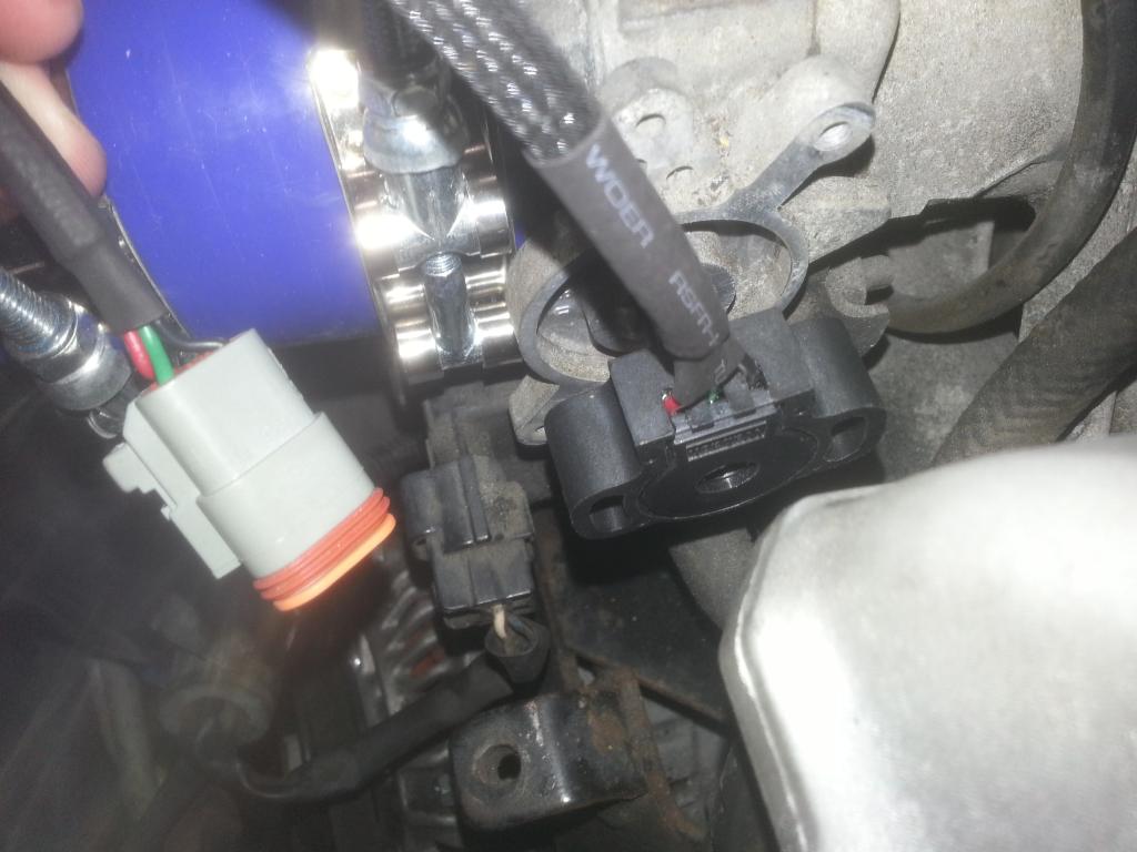 The TPS shaft did not fit all the way flush with the sensor, so I could deck the mount down to have it fully in there, but it should be fine how it is. Just need to tighten down now and confirm the wiring colors to the harness side.