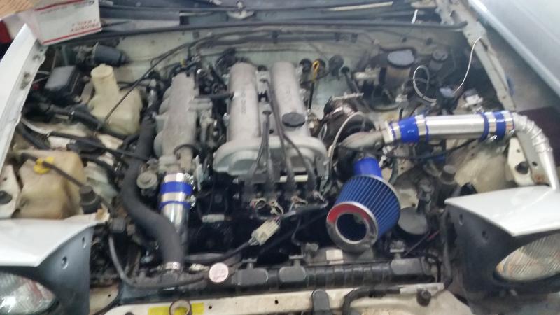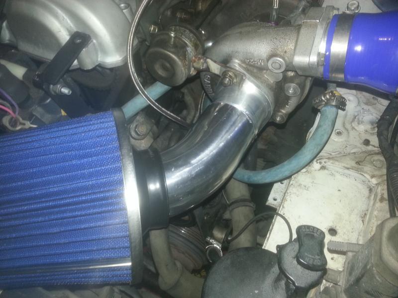 After playing in the engine bay for close to an hour trying to figure out where to fit the air filter, I finally got to the only spot it would really ever work. It just BARELY clears the hood. Now the question is: To weld or not to weld? I feel like not welding might make it a little easier to take off if I need to get to the belts... but IDK, welding might look cleaner and be more robust.