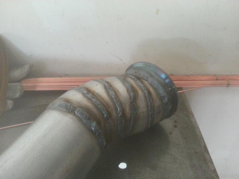 That ugly middle portion I've been trying to hide is actually another very small <5 degree piece I needed to get the angle right. There was a lot of gaps and I am not really good at filling huge gaps with GTAW. But alas, nearly full penetration everywhere so I feel good about it.