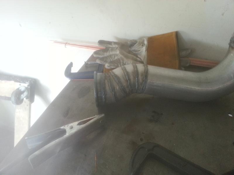 Working on downpipe. Just need to weld in wideband bung and then fully weld everything.
