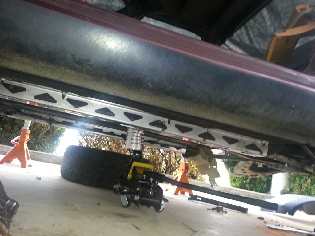 Literally nothing is fully attached to the car at this point minus a side marker or two. The sub frame was just snugged onto the car so I could get it on the liftback.