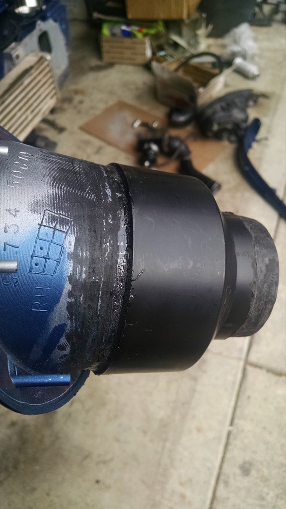 Lulz. Never mind. Fitting fits fine, just had to remove all electrical tape and push it on. Okidoke.
