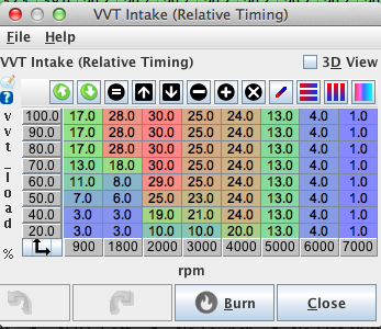 What does the VVT curve look like? That's supposed to have a huge impact on spool.