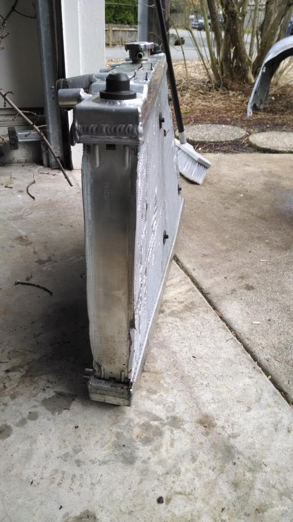 And here's what my radiator looks like. Somehow, not a single leak. Intercooler is undamaged