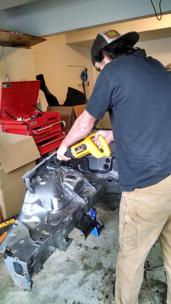 Ben (Yank) showed up maybe 15 minutes later with his own sawzall. Gave him a blade and he started on the back end.