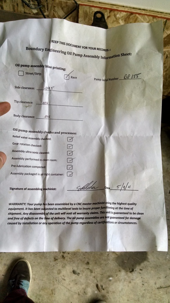 Was trying to organize the garage some today and found this. There was some doubt as to whether my engine had a BE pump or not, but Josh and I assumed it did based on the rest of the build.