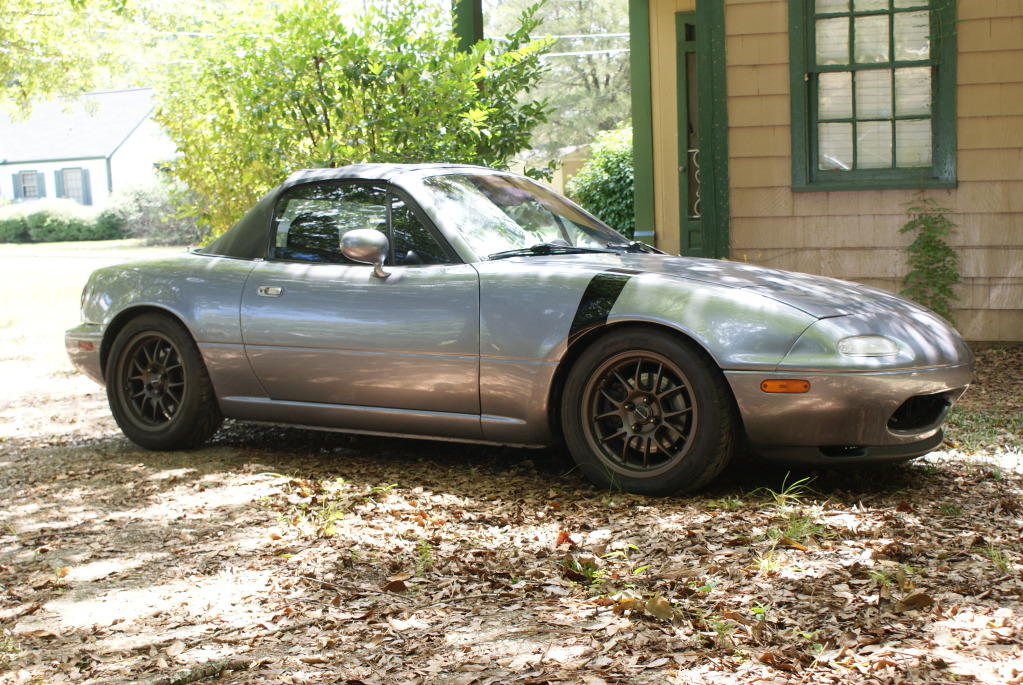 I have a smurf blue 92 miata. Bought it about 6 months ago. No power steering, took out the A/C. 154,xxx miles. Had ugly chrome wheels that were in baaaaad shape, and an ugly exhaust tip that I had to sawzall off there. Dash is in bad shape but I'm planning on getting a new one when I find the right one.