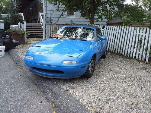 Just bought my first miata off of some random guy down the road from me, great price so here we go on the adventure of building my little Rosca into something beautiful but not too pretty because shes going to have to roar and talk a little dirty for me to be happy with her. I'll be posting pictures of the progress as time goes. If you don't like what I do to my car, leave your comments to yourself because I truthfully do not care! And will just laugh at you!