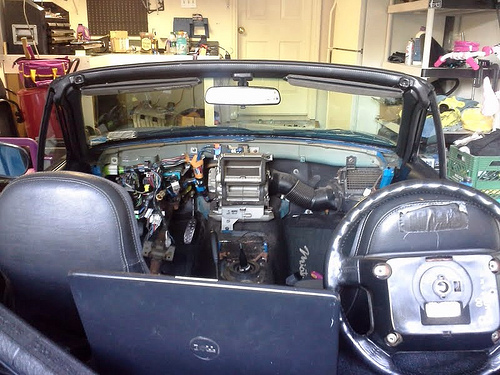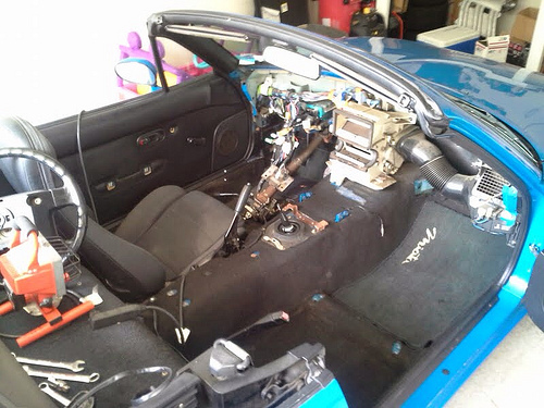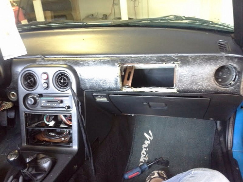 I'm still trying to figure out that giant hole. NAV system? Somebody REALLY want to get into a locked glovebox? Good job on the swap. I need to pull the dash for a roll cage on my red car. Not looking forward to it.