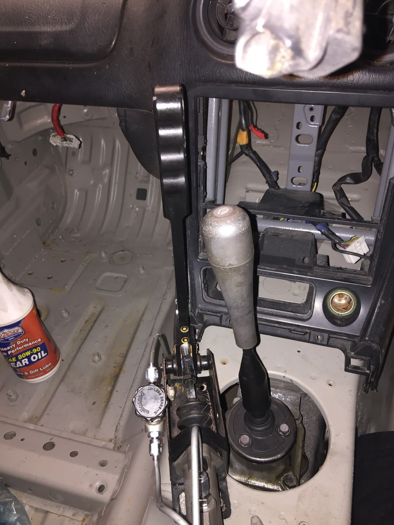 Replumbed the hand brake & decided to try out my figs shift ****. It would definitely need some miata roadster short shifter love, feels like rowing a boat but it does put my hand in a good place between steering wheel and the up to no good brake