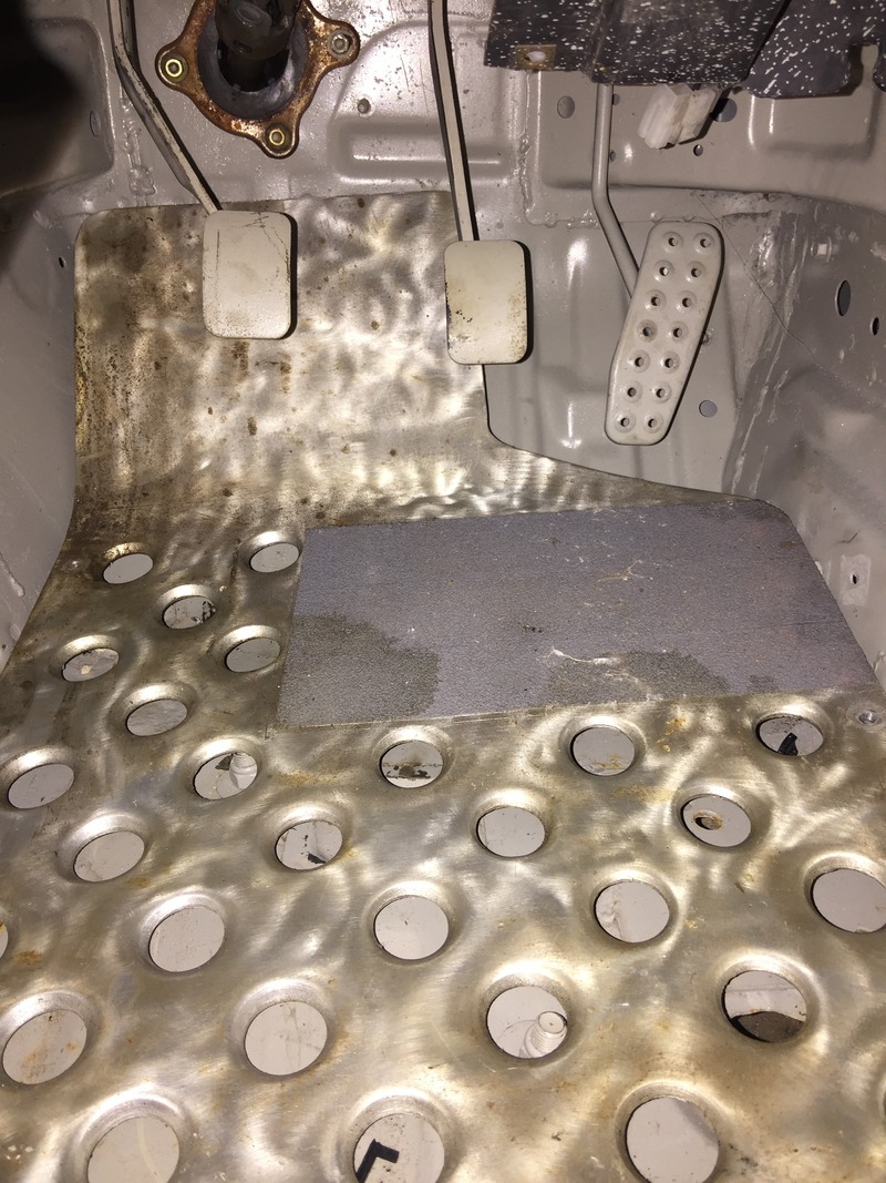 Floor plate thing my brother made from 3/16" aluminum. It's a little heavy. Not sure if I am putting the carpet back in yet. If I don't I'll probably use it.