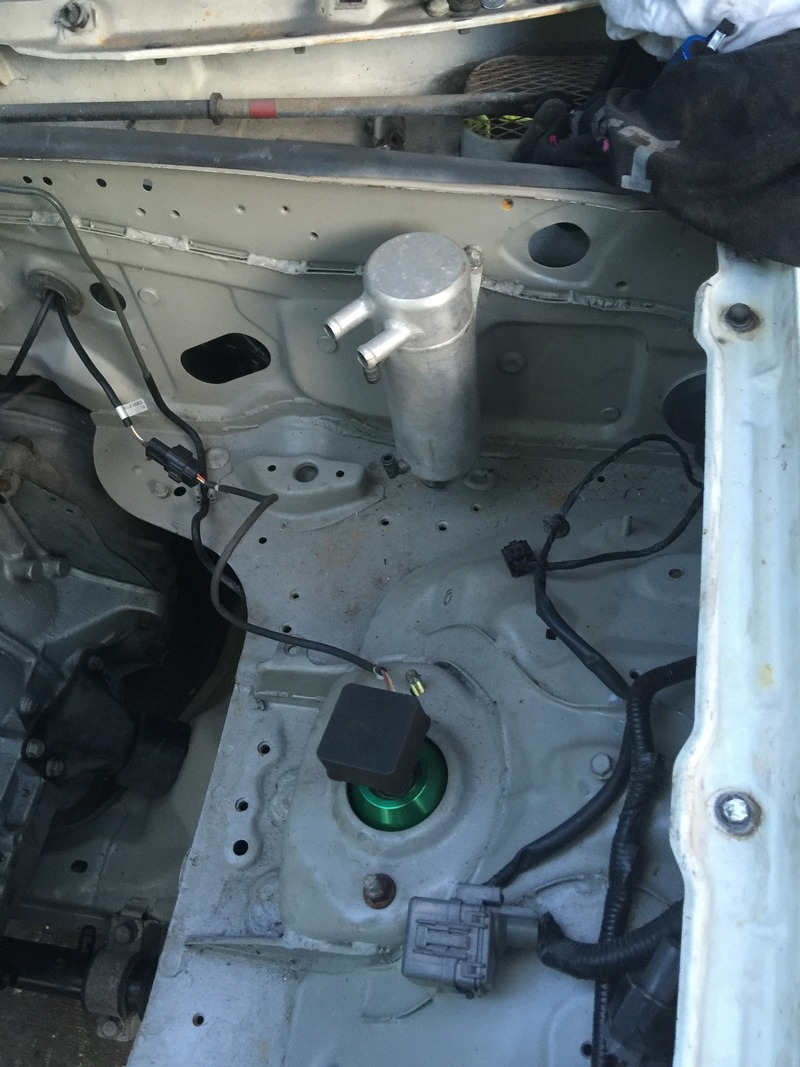 Welded up all the -16AN bungs. Getting that re-route spacer setup on with the motor in the car was FUN.