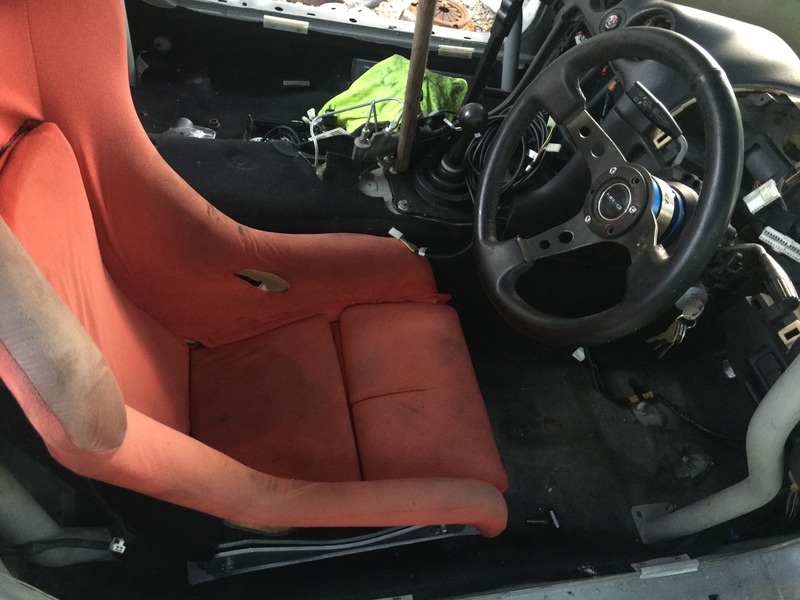 Carpet in, seat finally mounted, cage waiting to be bolted down and wrapped in padding. I also got a Worx Bell quick release which puts the wheel in the perfect spot.