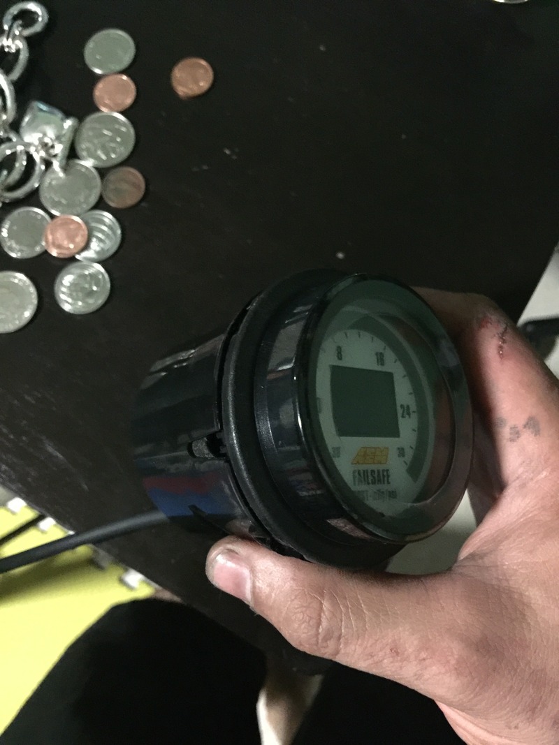 Test fitting the AEM failsafe gauge in one of the AC vents. It sticks out a bit but it's snug and definitely not going anywhere